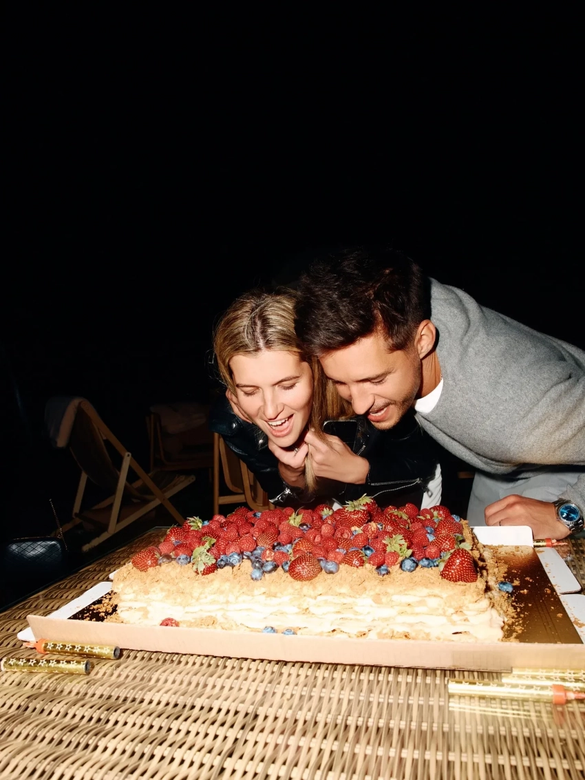 Дмитрий и Кристина ВикулиныКристина и Дмитрий Викулины, Пётр Дранга и Агата МуцениецеДмитрий Викулин, Ксения Ермоленко и Павел ТабаковМаша Фёдорова и Мария АндрееваАндрей Артёмов и Дмитрий ВикулинЕкатерина Мцитуридзе и Дмитрий ВикулинДмитрий Викулин и Светлана КузнецоваДмитрий Викулин и Игорь ГаранинДмитрий Викулин, Юлия Харитонова и Асланбек ДжалиевВладимир и Анита Аверьяновы, Дмитрий ВикулинКатя ДобряковаЕлена ОкутинаТоржество проходило под открытым небом у воды, праздничный стол ломился от угощений и напитков на любой вкус, а в какой-то момент сам именинник эффектно занырнул в бассейн. Вместо классического торта подали трендовый — украшенный ягодами, свечи на котором Дмитрий задувал вместе с женой Кристиной.