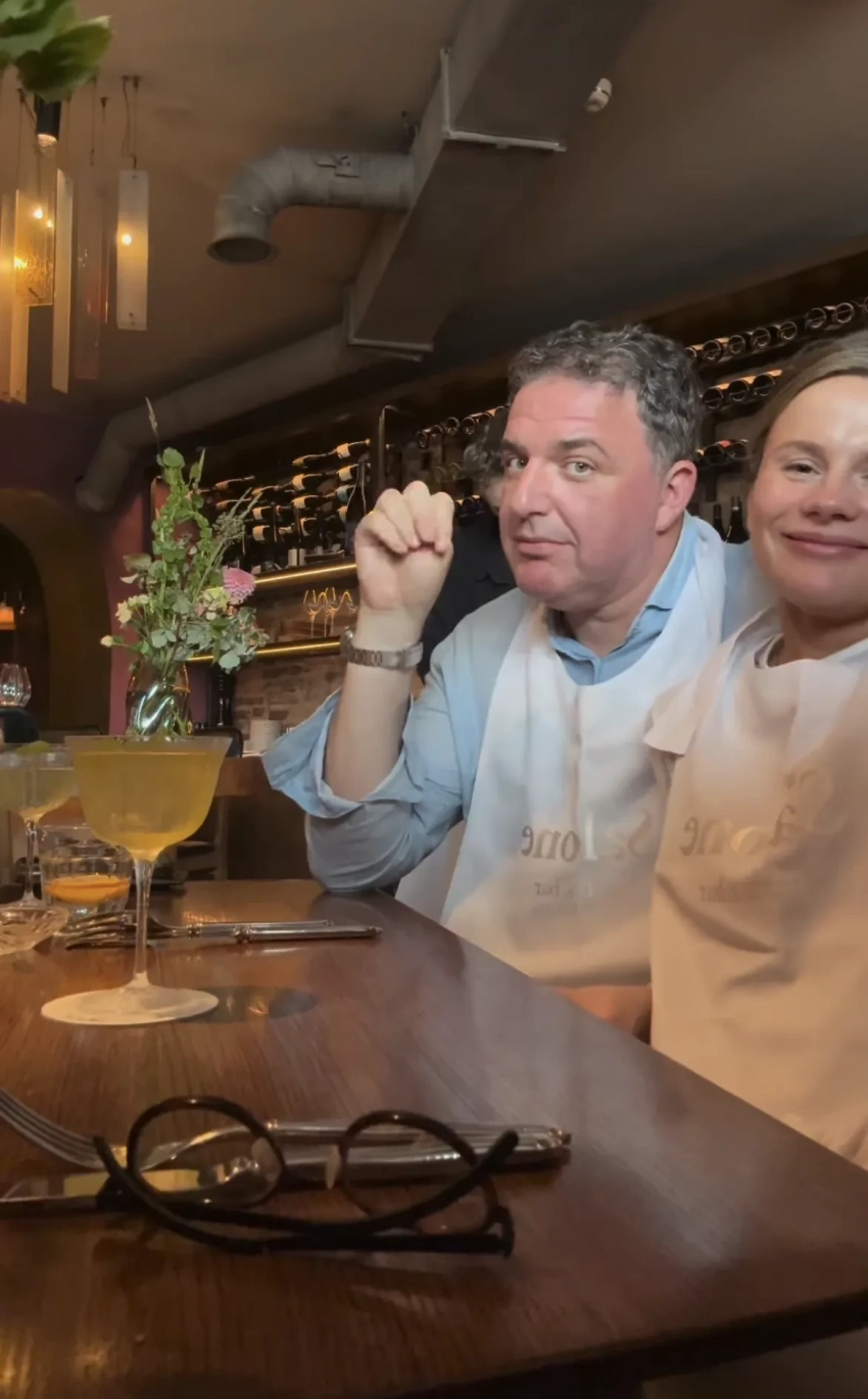 Максим Виторган (показывает международный жест о помощи) и Анна Короткова