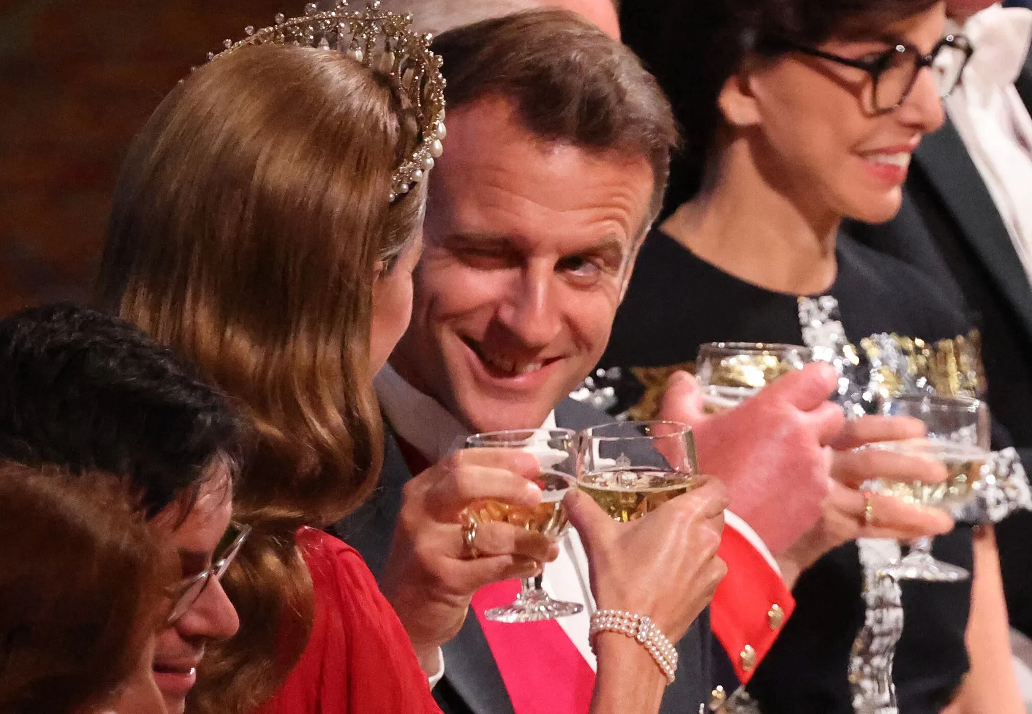 Обсуждения начались из-за фотографий, на которых Кейт Миддлтон и Макрон улыбаются друг другу, а также чокаются бокалами. На некоторых из них Макрон также подмигивает принцессе Уэльской. На сайте Daily Mail многие возмутились таким поведением президента: "Бедная Кейт", "Какой отвратительный француз. Мне так жаль принцессу Уэльскую", "Подмигивать будущей королеве неуместно", "К счастью, жена Макрона не застукала его за тем, как он пялился на Кейт".