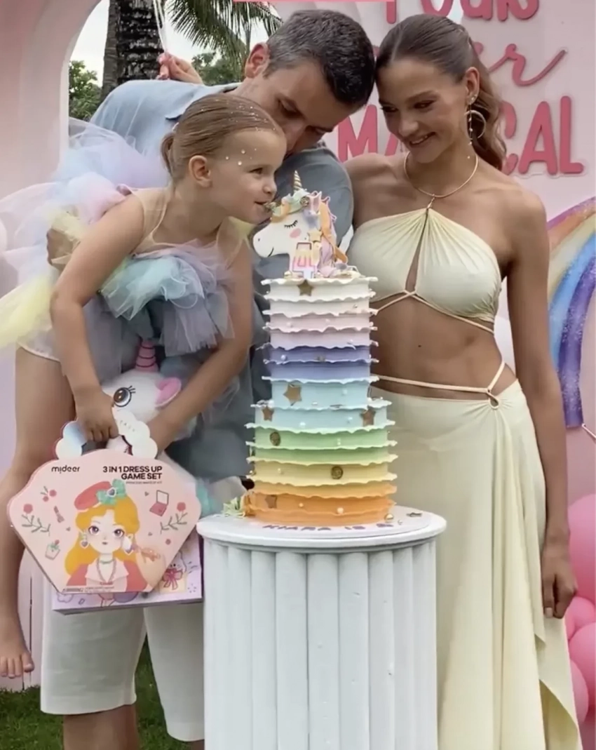 В сети появились новые фотографии с празднования дня рождения дочери Алеси Кафельниковой Киары, которой на днях исполнилось четыре года. 26-летняя Кафельникова поделилась снимками с детской вечеринки, показав не только фото с дочерью, но и с мужем, 39-летним бизнесменом Георгием Петришиным, который нечастый гость в соцсетях модели.