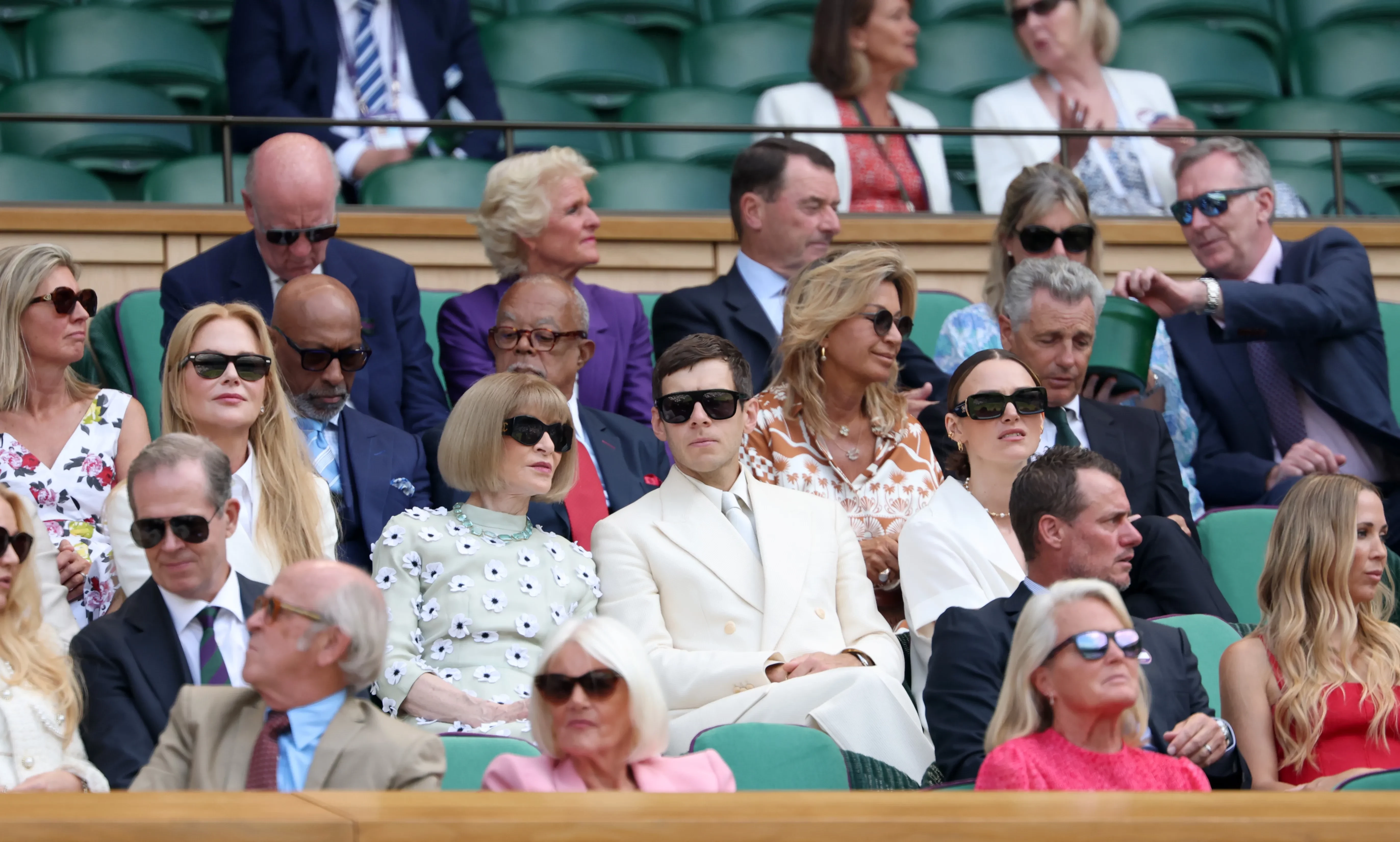 Другими гостями турнира стали Мэттью Макконахи с женой Камиллой, Рами Малек, Бенедикт Камбербэтч с женой Софи Хантер, 75-летняя модель Твигги. Как сообщалось ранее, на трибунах также появились принц Уильям и Кейт Миддлтон с двумя своими старшими детьми. Принцесса Уэльская вручила награду одной из победительниц.