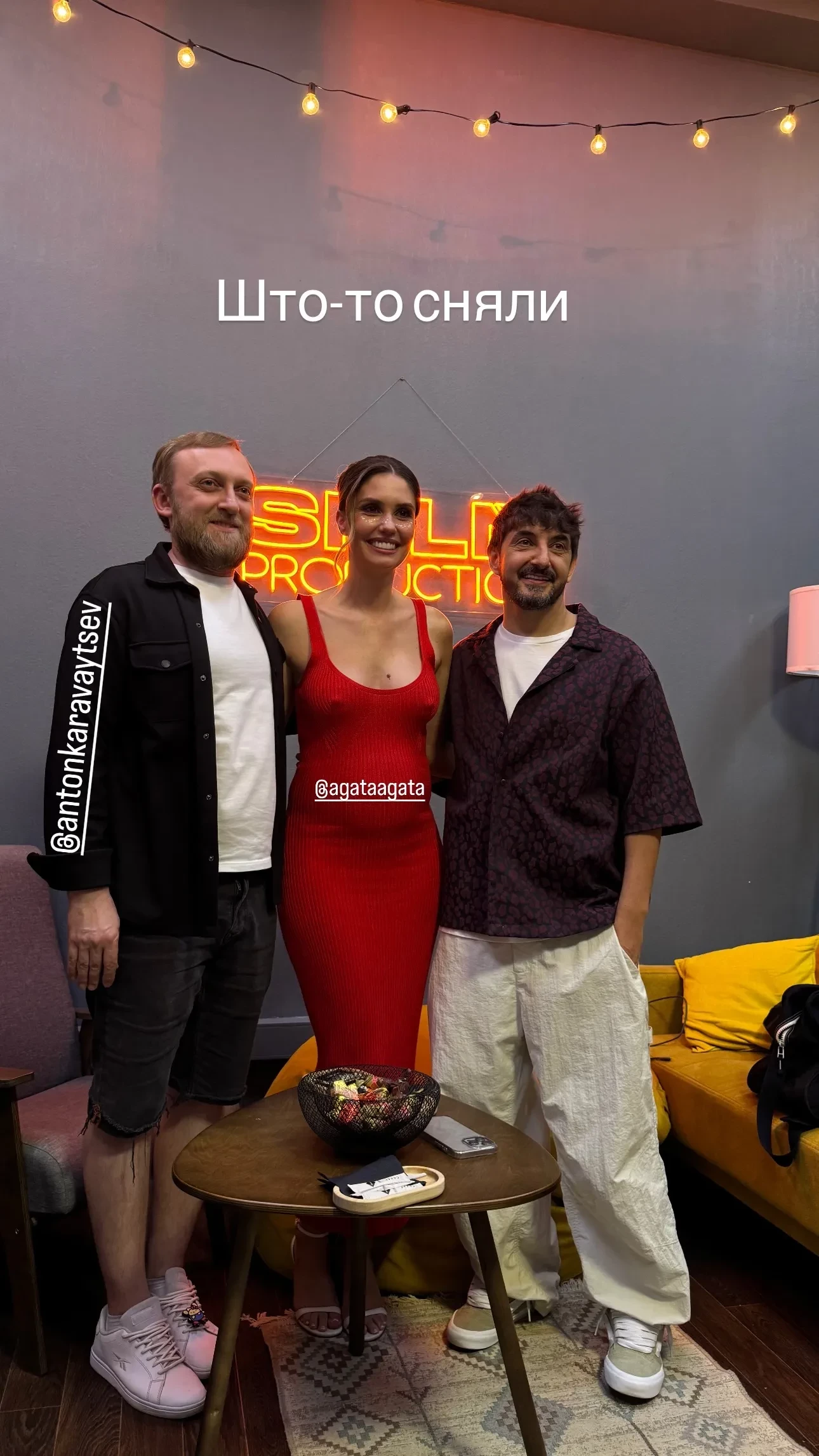 Агата Муцениеце, которая ждёт ребёнка от своего жениха Петра Дранги, репостнула в инстаграме* публикацию звезды "Что было дальше?" Сергея Матвиенко. На снимке 36-летняя актриса позирует вместе с ним и близким другом (также беременной) Иды Галич, сценаристом Антоном Каравайцевым.