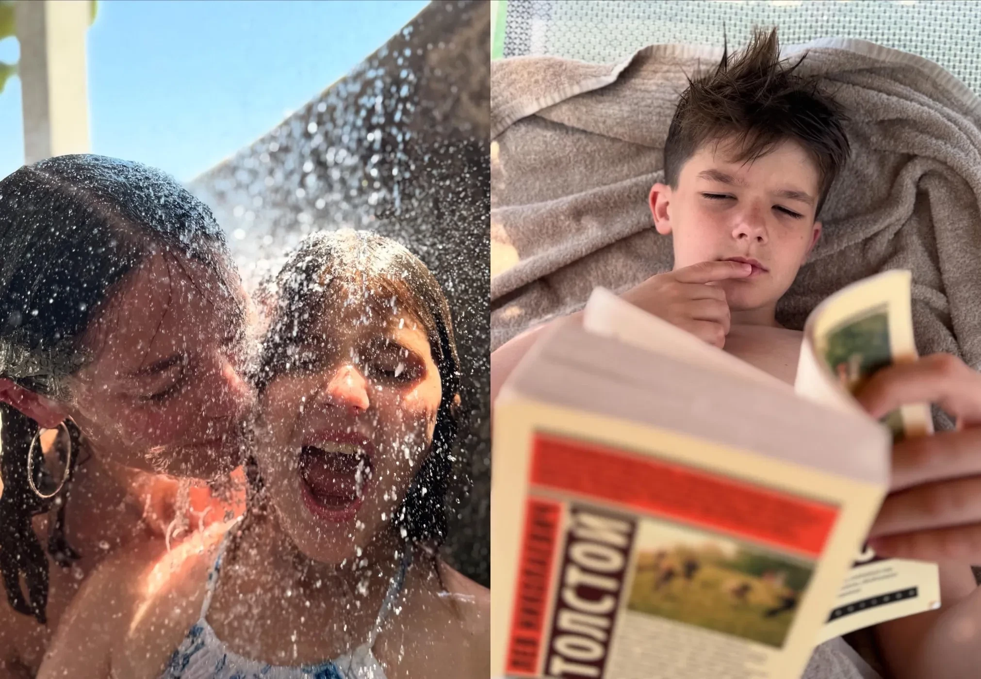 На фото актриса позирует под небольшим водопадом как одна, так и вместе с девятилетней дочерью Екатериной (имя девочка получила в честь Екатерины Великой, роль которой Александрова исполнила в историческом телесериале "Екатерина II"). 12-летний сын Андрей, в отличие от мамы и сестры, предпочёл не участвовать в водных развлечениях и остался читать книгу на лежаке. "Да, мужчины нашей семьи с пониманием относятся к нашим эмоциональным горкам!", — подписала пост Марина.
