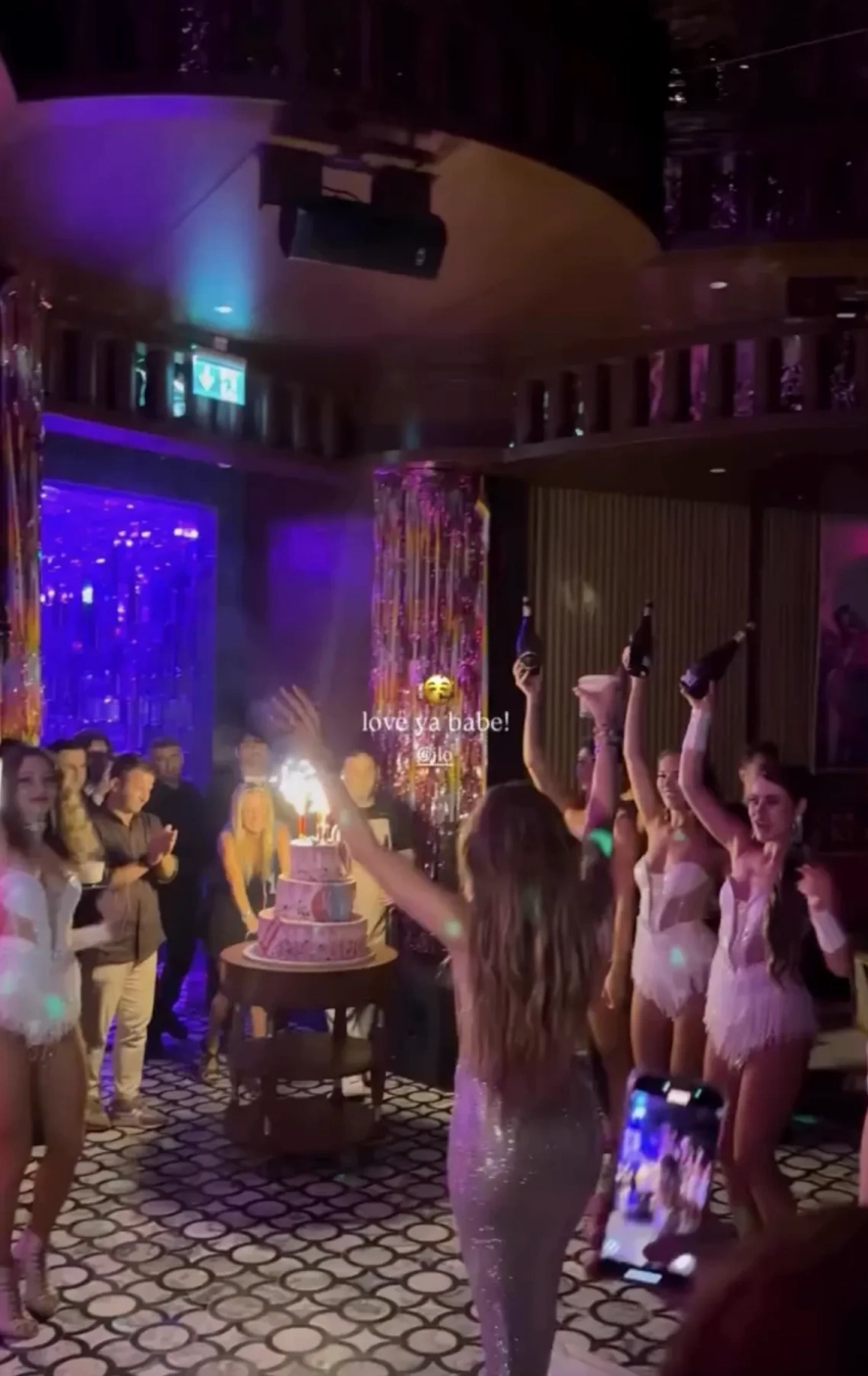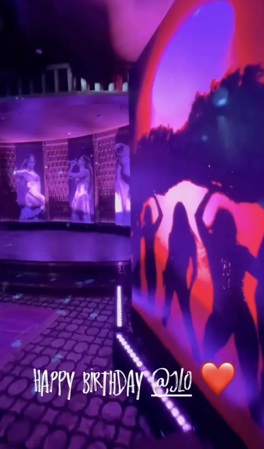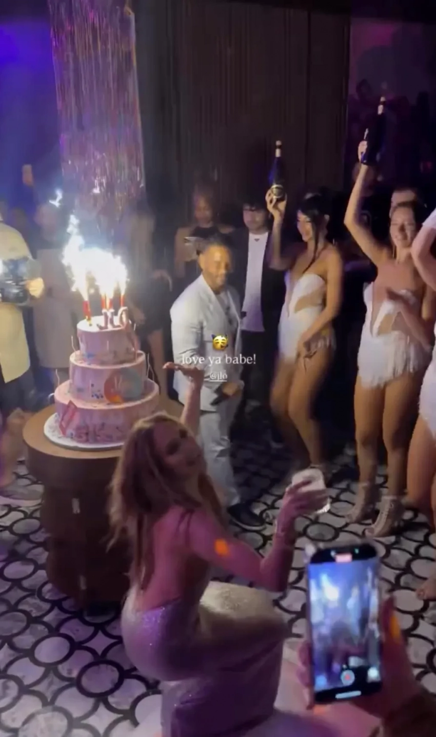 Лопес появилась на празднике в облегающем серебристом платье под свой новый трек Birthday, выпущенный специально ко дню рождения. Певица танцевала вокруг праздничного торта в окружении танцоров, музыкантов и других своих сотрудников.