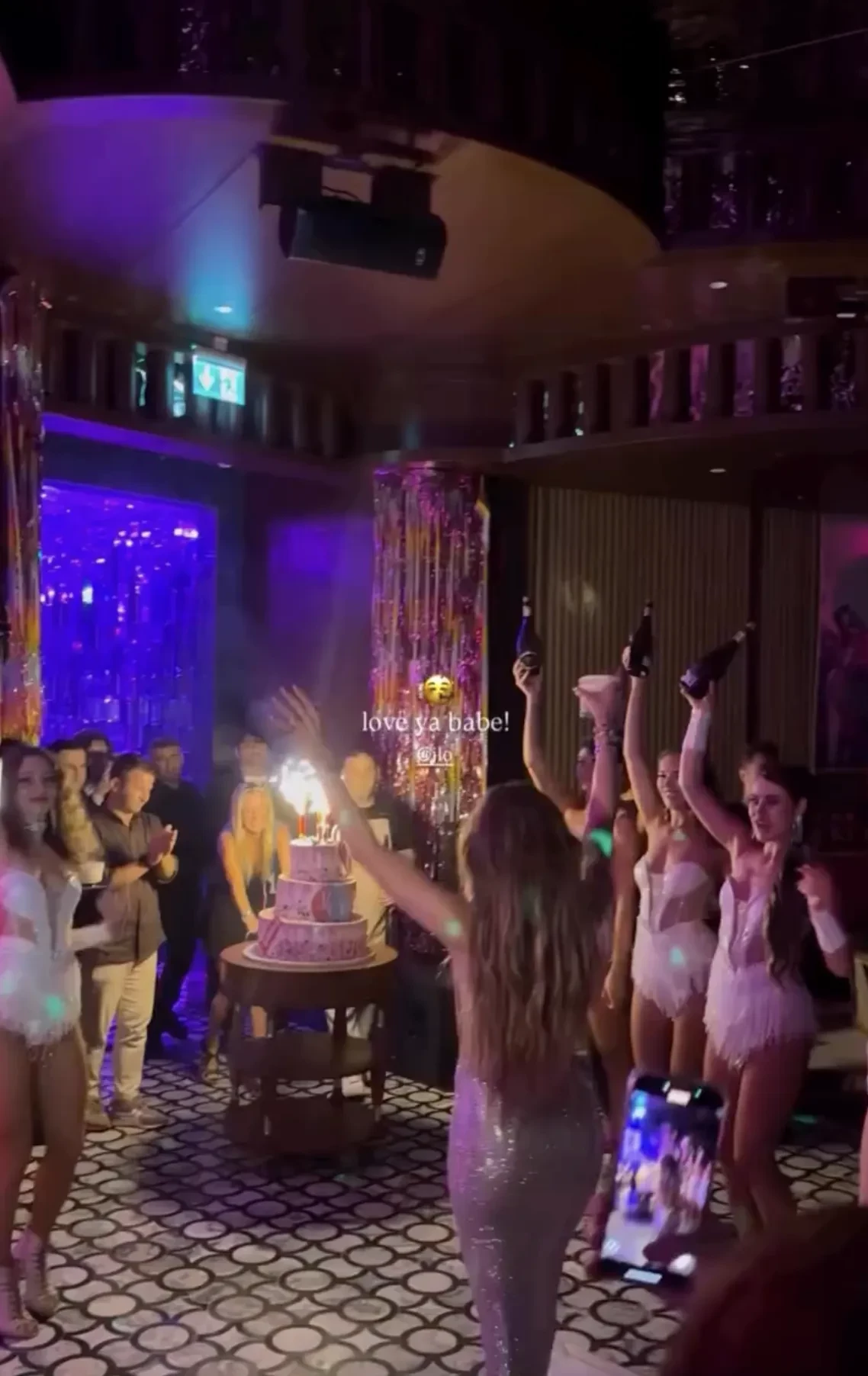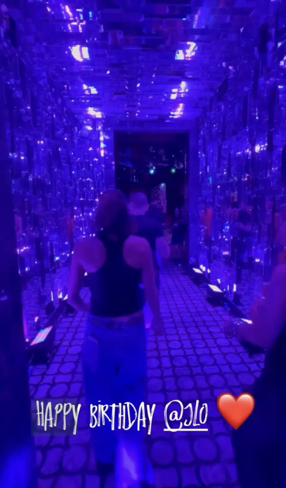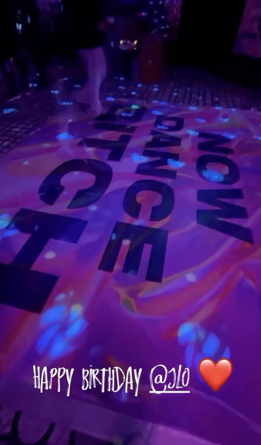 Лопес появилась на празднике в облегающем серебристом платье под свой новый трек Birthday, выпущенный специально ко дню рождения. Певица танцевала вокруг праздничного торта в окружении танцоров, музыкантов и других своих сотрудников.