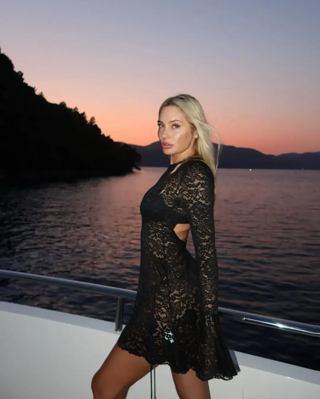 Экс-солистка группы "Мобильные блондинки" отправилась на водную прогулку по озеру Комо, а Наталья Рудова примерила кружевное платье на яхте и показала фигуру в бикини.