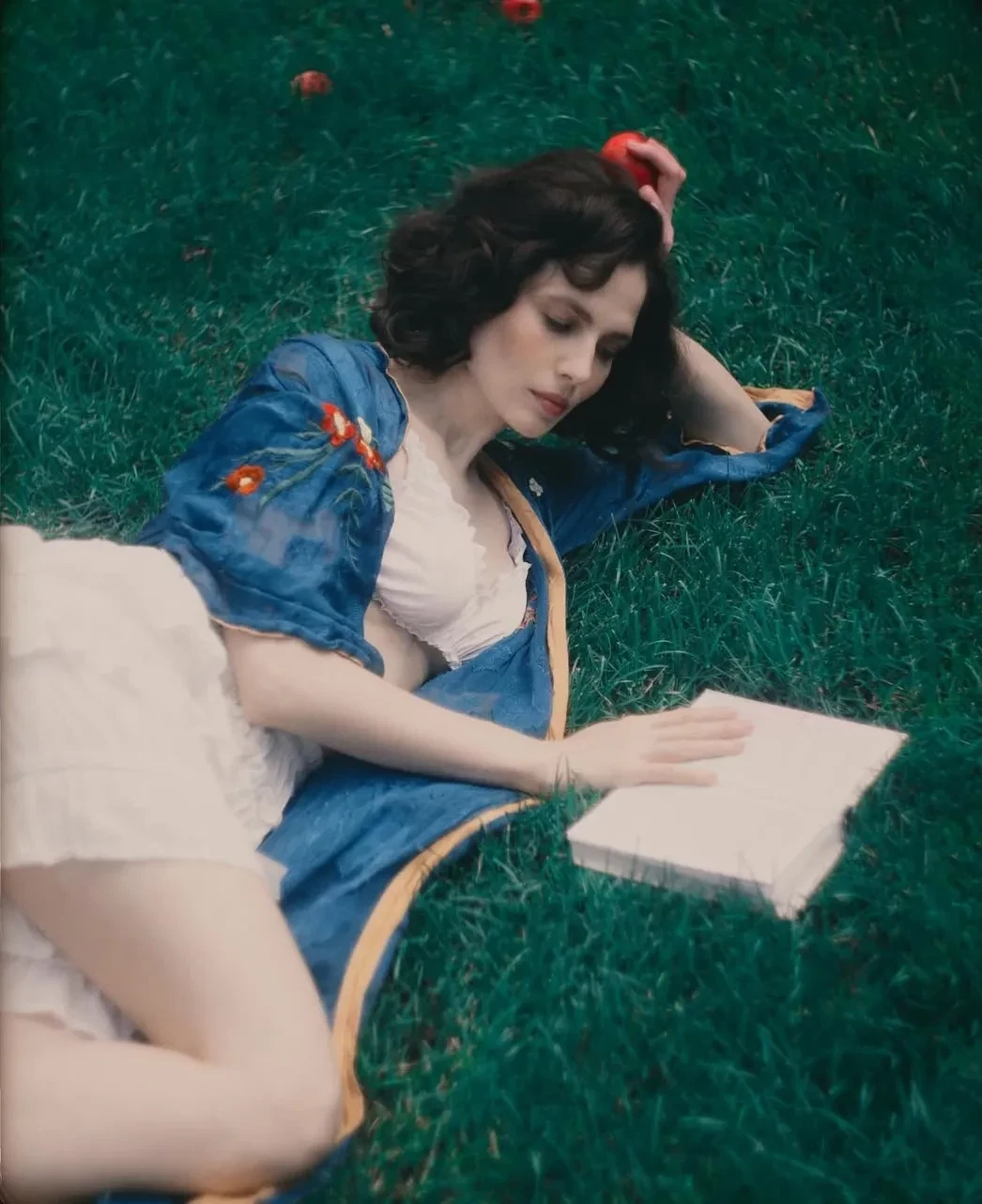 42-летняя Юлия Снигирь опубликовала в соцсетях снимки из новой фотосессии. На фотографиях актриса и супруга Евгения Цыганова позирует в образе Белоснежки в белом нижнем белье в ретростиле и синем халате.