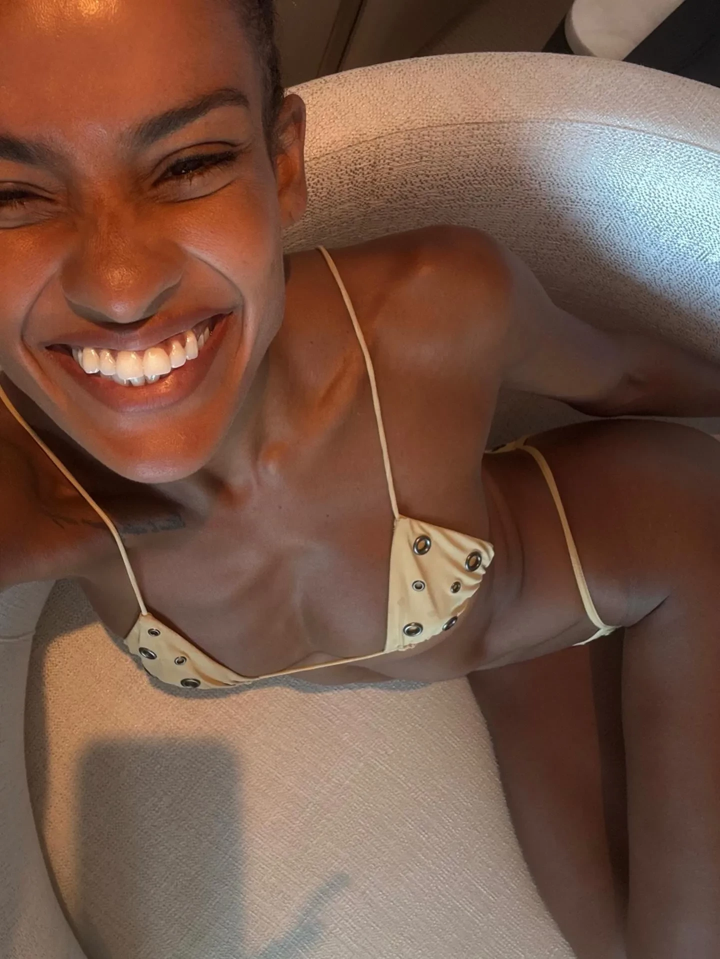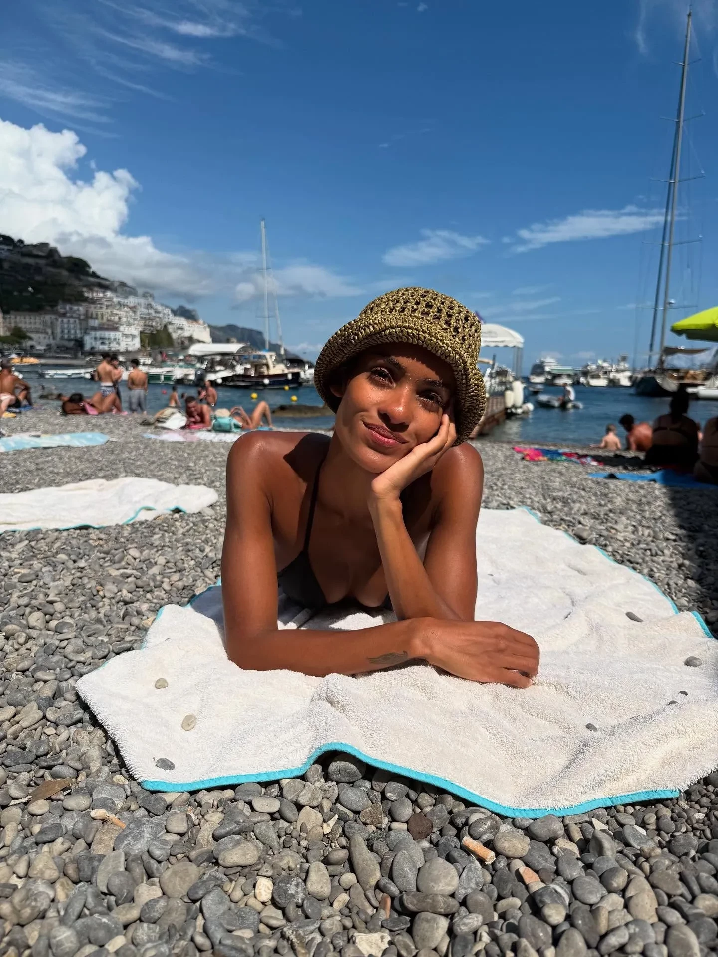 Девушка Венсана Касселя отдыхает в бикини на яхте в Италии