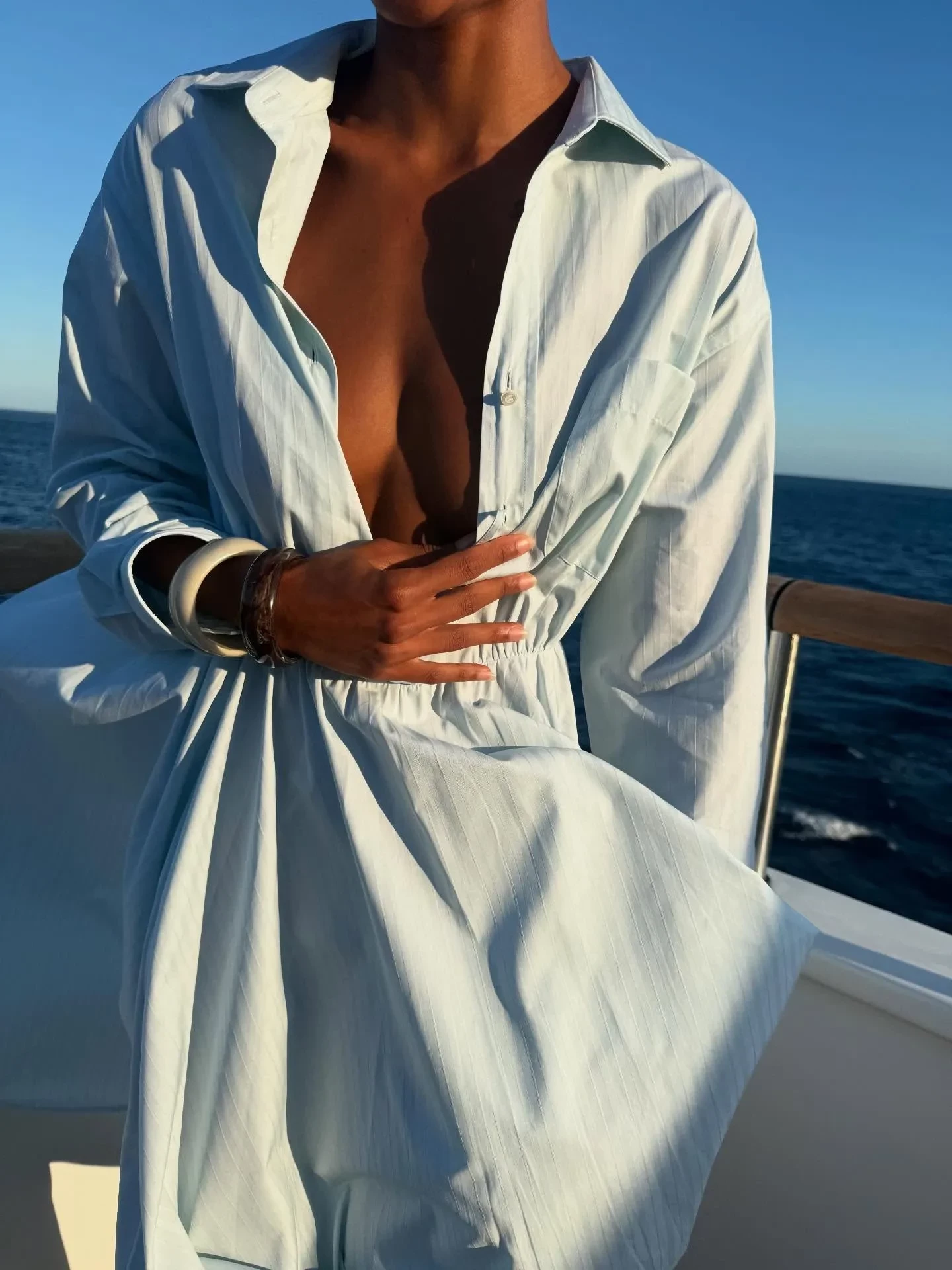 На снимках 28-летняя Баптиста позирует в платье на яхте. Также она добавила несколько снимков в бикини с пляжа. Не обошлось и без фото топлес, которые Нара довольно часто публикует в своём аккаунте. "На солнце" — подписала Баптиста фотографии.