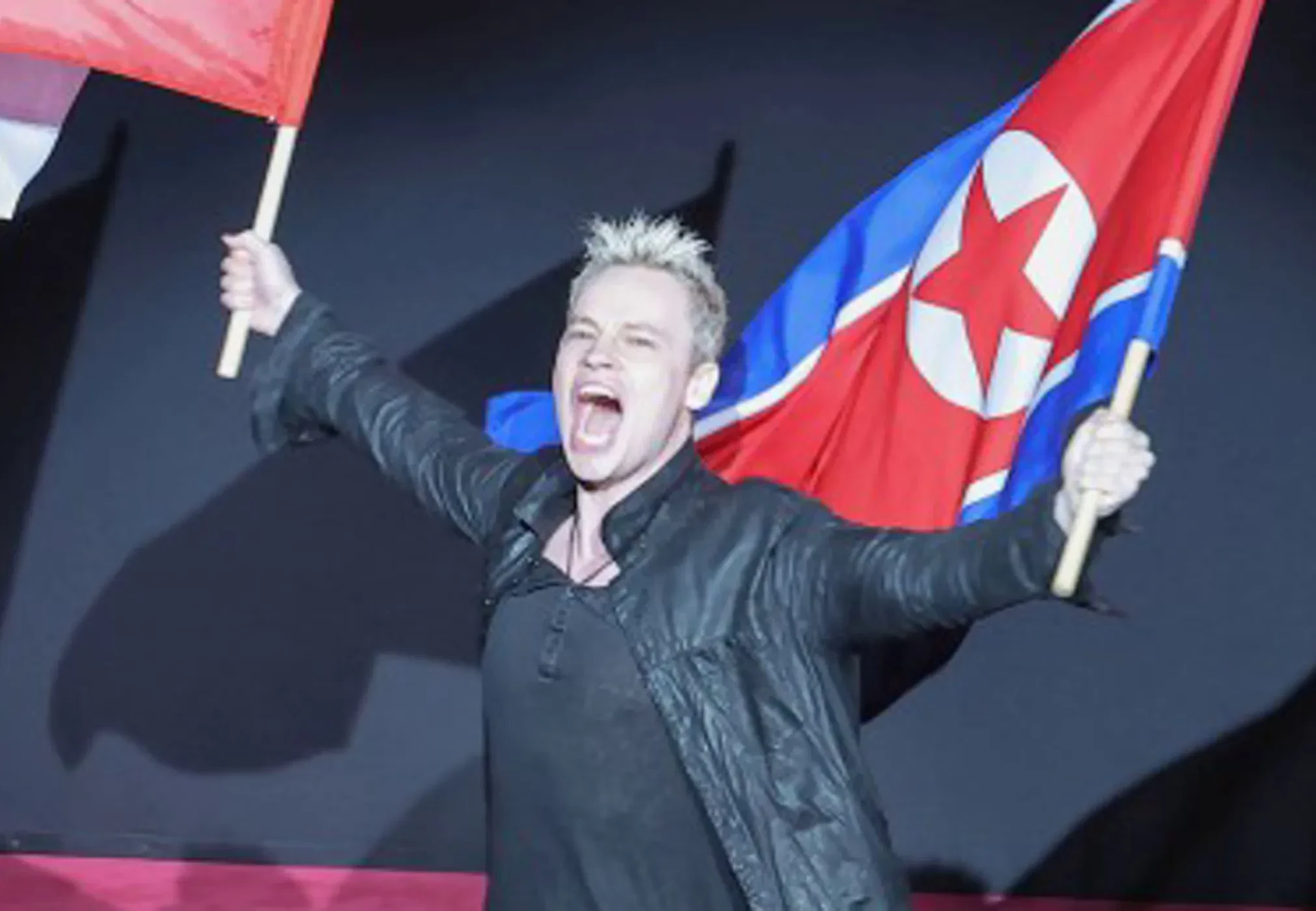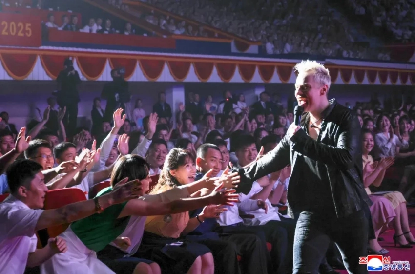 33-летний Шаман (Ярослав Дронов) выступил в Пхеньяне на концерте по случаю 80-летия освобождения Корейского полуострова от японского господства. Фотографии с мероприятия опубликовало Центральное телеграфное агентство Кореи.