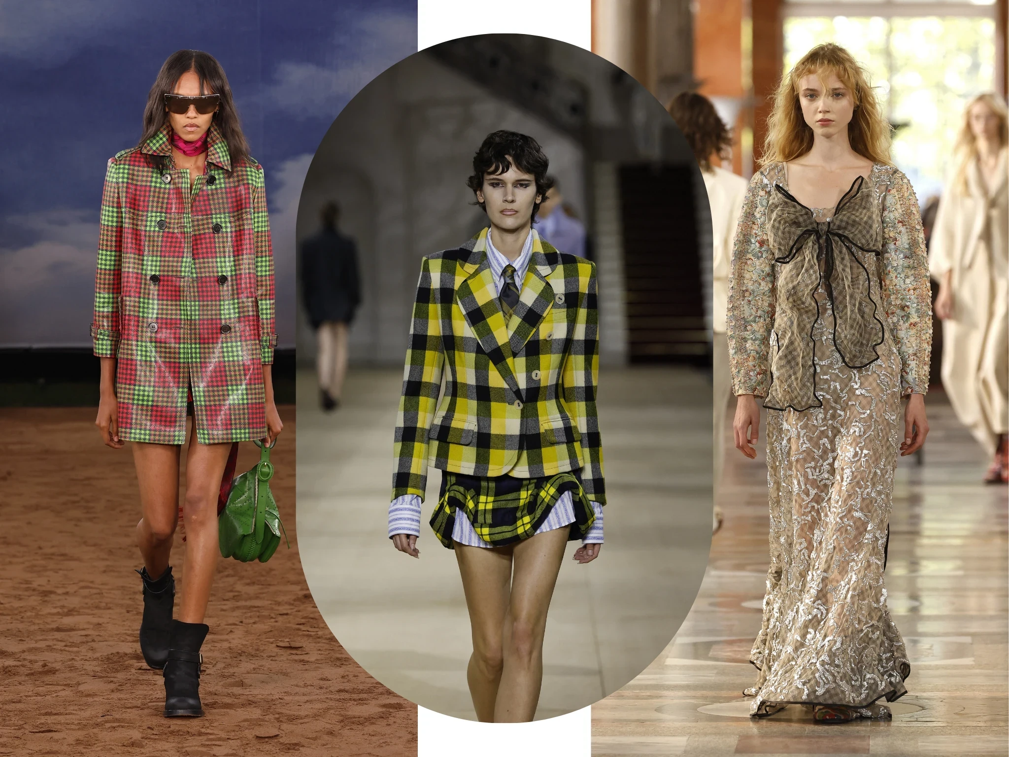 Тартан, виши, гусиная лапка и мадрас — хиты осени 2025 года сохраняют популярность и весной 2026. Burberry диктует правила классического стиля, Vivienne Westwood — панковский взгляд на клетку, а Louis Vuitton интегрирует принт в украшения и платья. Не стоит забывать и о принте аргайл — ромбовидные узоры продолжают вдохновлять инфлюенсеров на свитера и жилеты.