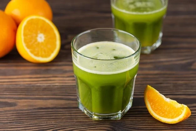 Матча — мощный антиоксидантный напиток, который снижает тревожность благодаря L-теанину, регулирует сосудистый тонус и помогает коже вырабатывать собственный коллаген. Апельсин усиливает антиоксидантный эффект.