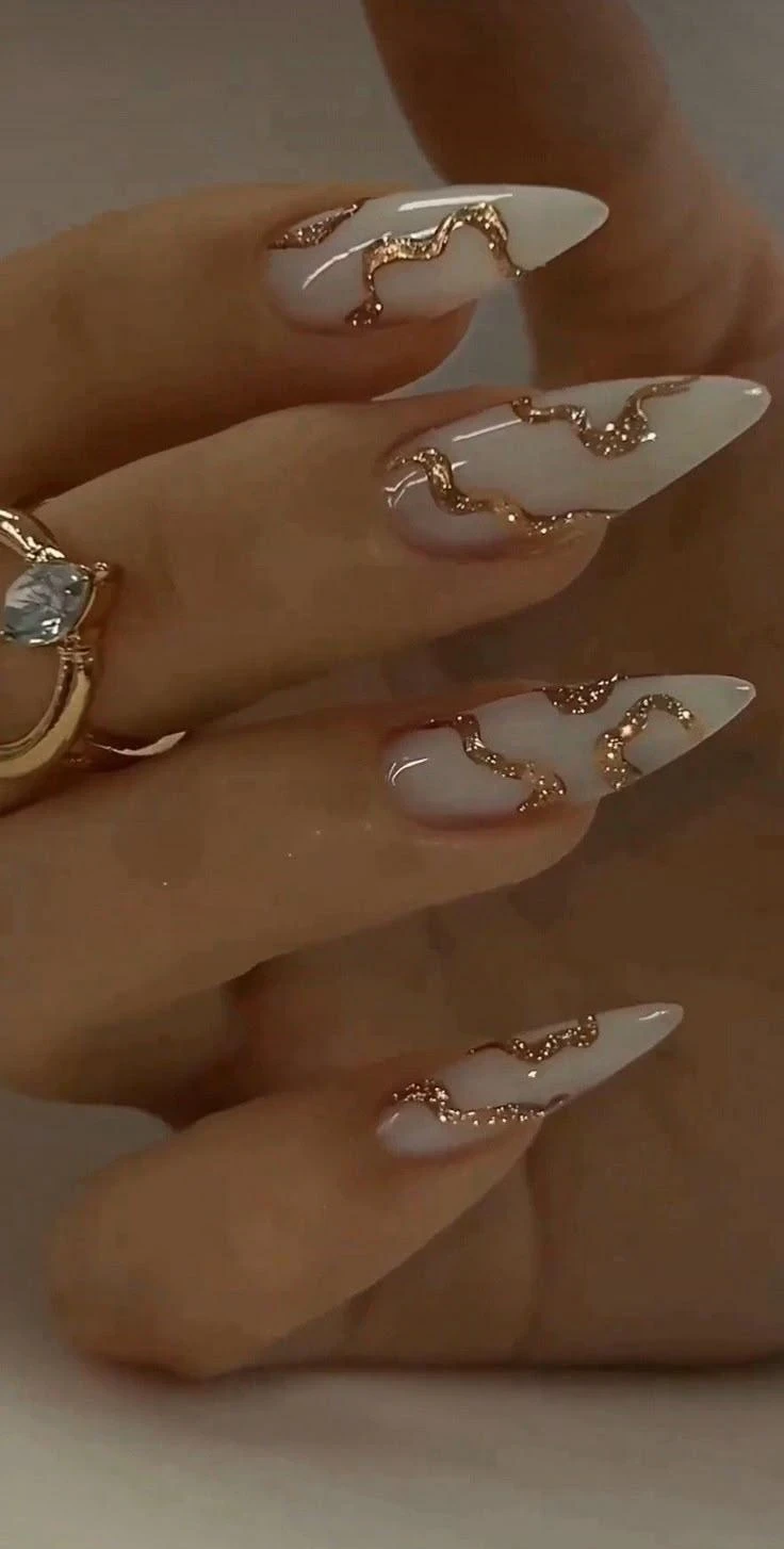 Золото — вечный символ процветания. Даже тонкая линия, фольга или легкая втирка мгновенно превращают маникюр в праздничный и значимый.