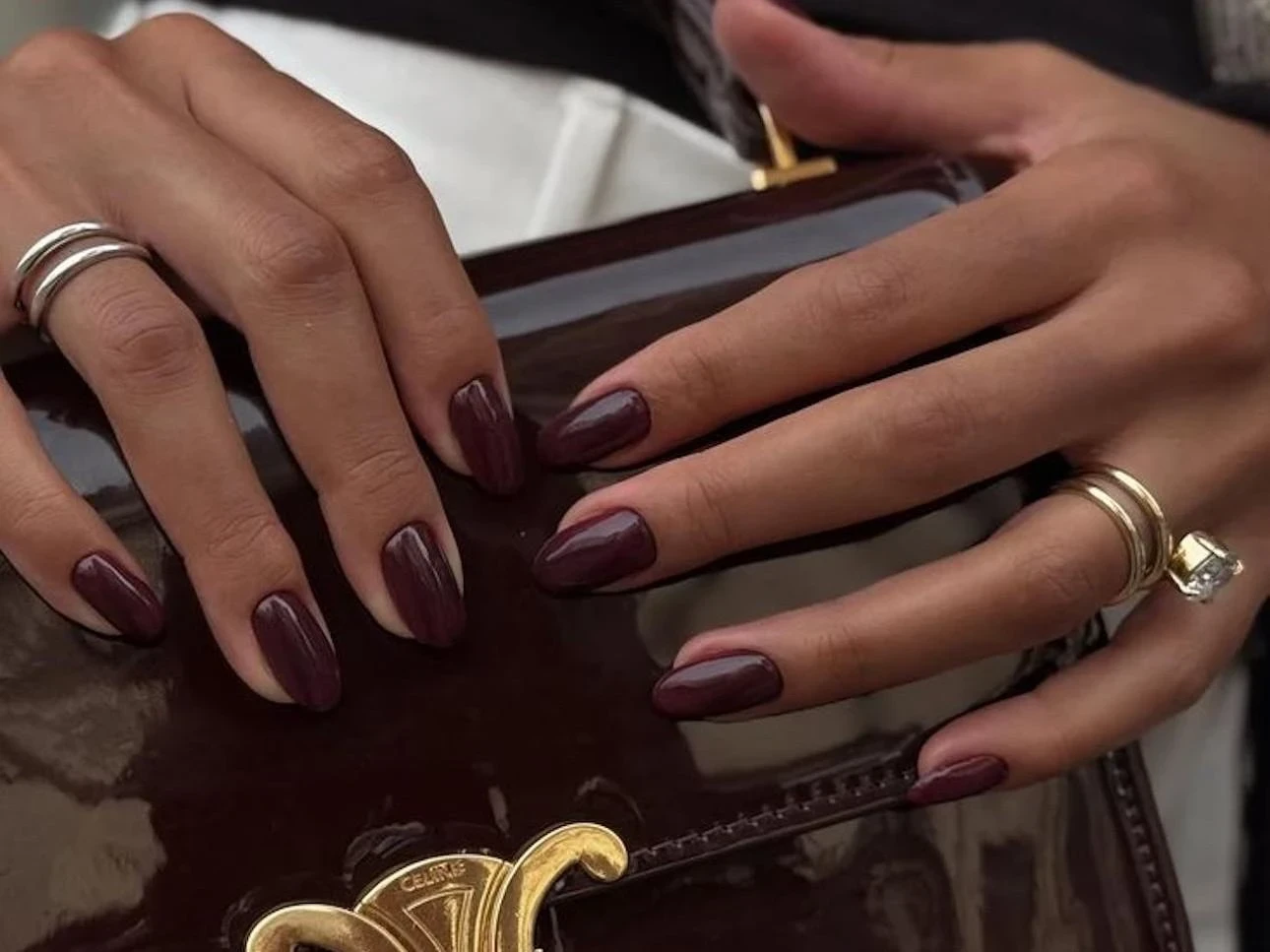 Этот оттенок сохраняет глубину при любом освещении и не уходит в черный. Для аккуратного результата важно выбирать плотные лаки без полупрозрачного эффекта. Такой маникюр подчеркивает форму ногтя и делает руки визуально более собранными.
