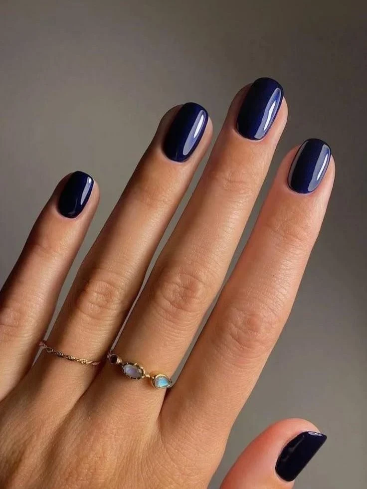 Глубокий синий цвет придает маникюру четкость и структуру. На коротких ногтях он выглядит особенно выразительно: покрытие ложится плотным слоем и создает чистую, ровную поверхность.