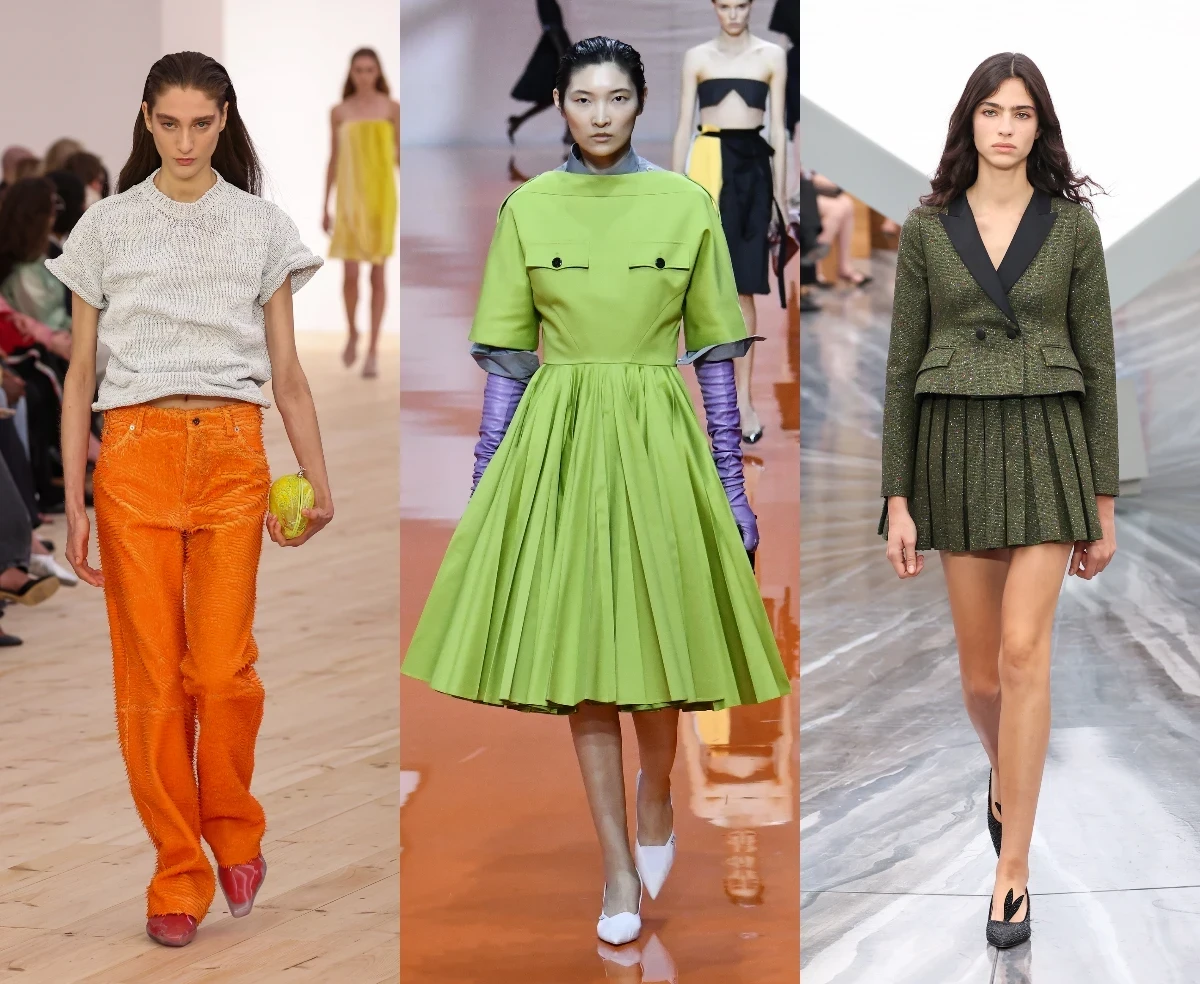 У Dior ярко-зеленый появляется в архитектурных пальто, у Loewe — в виде выразительных акцентов на фоне монохрома. Это цвет обновления, энергии и внутренней гармонии.