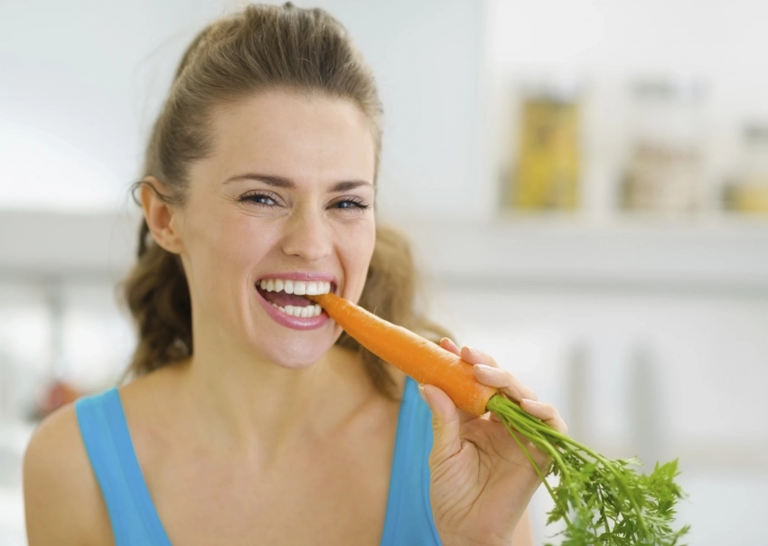 • Твердые овощи и фрукты (морковь, яблоки) – естественно очищают зубы и улучшают кровообращение десен.