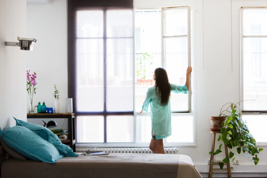 Первая и важнейшая задача — проветривание. Открытые окна помогут избавиться от застоявшегося воздуха, посторонних запахов и освежат атмосферу. Чистый воздух сделает помещение более приятным, а вам добавит энергии для дальнейшей уборки.