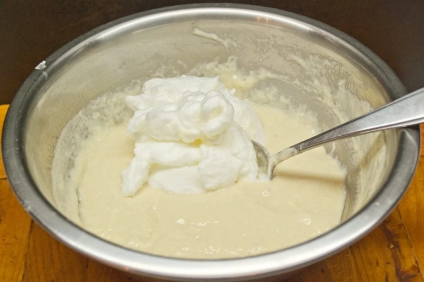 Белки вмешиваются в тесто последними и очень бережно, словно вы складываете в миску облака — иначе всё волшебство исчезнет.