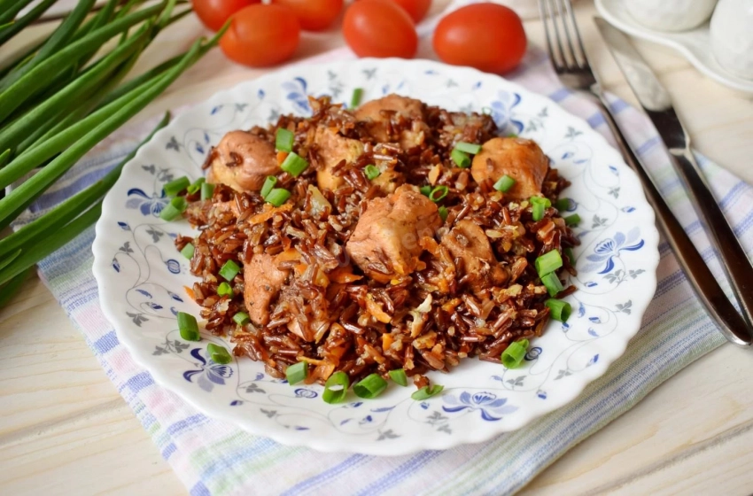 • 150 г гречки или бурого риса (сложные углеводы);