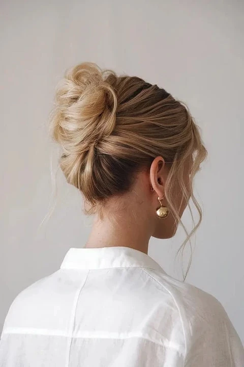 - небрежный пучок создаст «пинтерест»-настроение, будто укладка заняла 30 секунд;