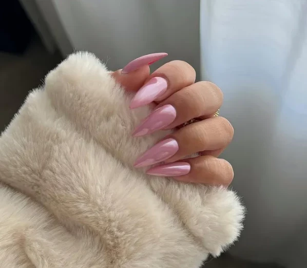 Если ты предпочитаешь длинные ногти, но хочешь сделать их менее агрессивными, пастельно-розовый хром — идеальный выбор. Этот оттенок напоминает молочный коктейль со вкусом клубники и смягчает форму ногтей, придавая им невероятную женственность и элегантность. Нежный розовый цвет добавляет лёгкости образу, делая его утончённым, но не лишённым характерной дерзости острых ногтей.