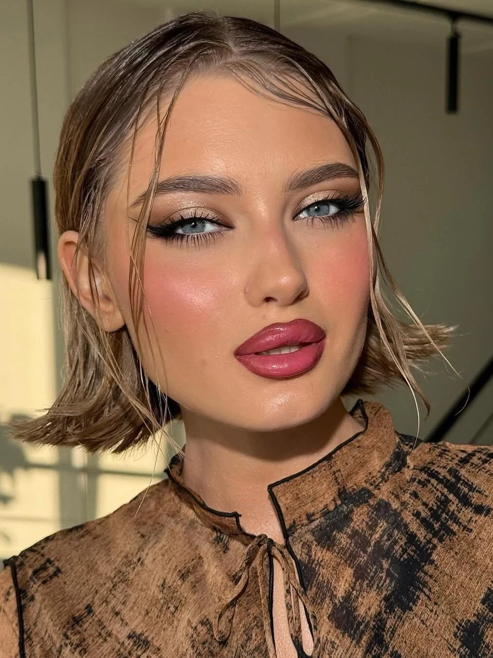 Используйте шоколадные и кофейные оттенки карандаша и помады, а блеск – в бежевом или персиковом оттенке.
