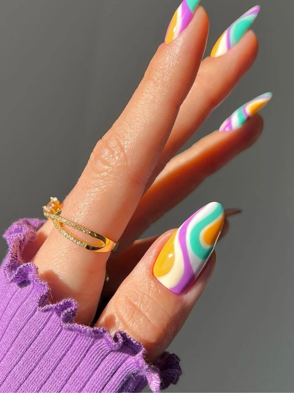 Лиловый — это цвет, который может менять свой характер в зависимости от оттенка. Нежно-лиловый символизирует романтику и свежесть, а более глубокий, почти чернильный лиловый говорит о силе и уверенности. Этот маникюр подчеркнет вашу индивидуальность и придаст образу не только нежности, но и дерзости.