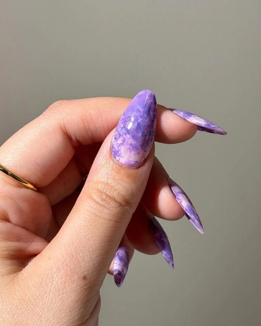 Сиреневый оттенок, от лавандового до насыщенного фиалкового, связан с интуицией и творческим вдохновением. Этот маникюр станет талисманом для тех, кто ищет новые возможности для роста и процветания. Сиреневый цвет напомнит вам прислушиваться к своему внутреннему голосу, который поможет принять правильные решения в финансовых вопросах.