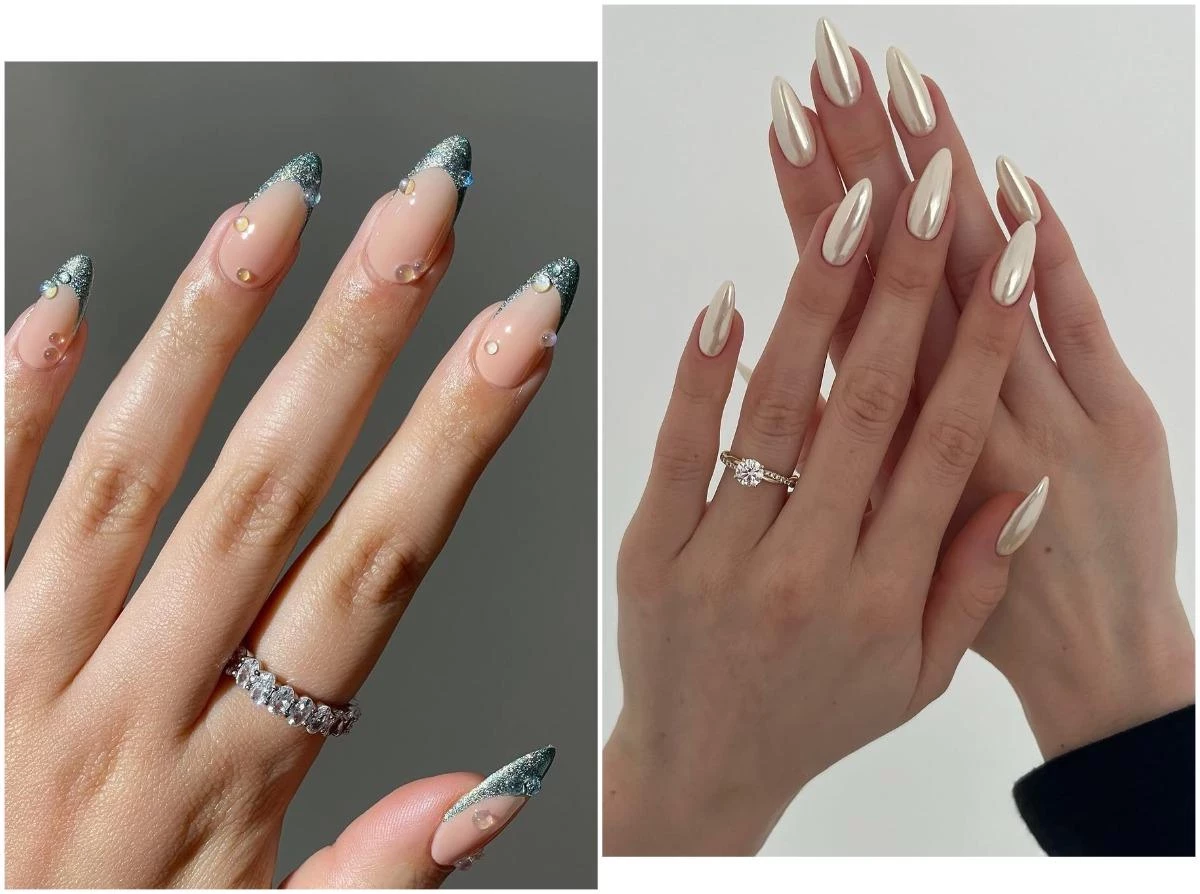 Для невест, которые хотят сиять, как сама любовь, — маникюр с серебряным глиттером. Используйте перламутровый лак или пигмент с крупными блестками, чтобы добиться нужного эффекта. Идеально для вечерней церемонии или свадьбы в стиле гламур.