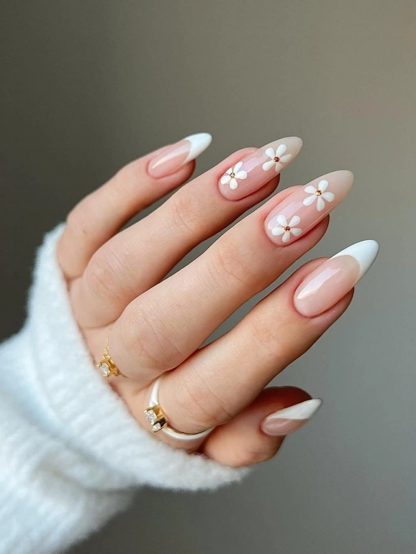 Если ваша свадьба состоится весной или летом, цветочный нейл-арт станет нежным продолжением образа. Акварельные лепестки, тонкие веточки, пастельные бутоны — всё это подчеркнет романтику момента. Особенно красиво смотрятся цветы на молочном фоне.