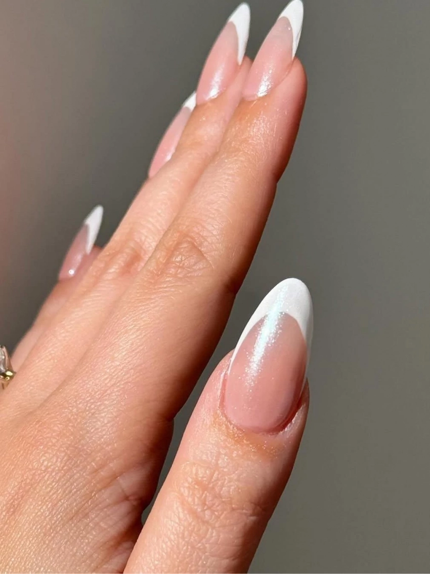 Ногти, мерцающие как морская раковина, — тренд, неподвластный времени. Перламутровые переливы добавляют глубины и утончённости. Если под рукой нет нужного лака — используйте мерцающие тени, закрепив их прозрачным топом. Получится не хуже, чем в салоне.
