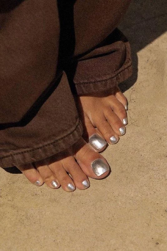 Футуристичный блеск для смелых. Серебро, золото, хром — металлический педикюр выделяется и добавляет модного акцента в образ.