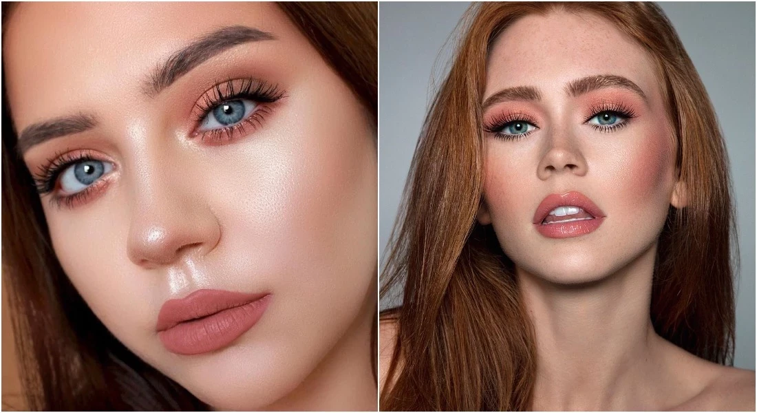 • Голубые глаза: персиковый, теплый розовый, медный.