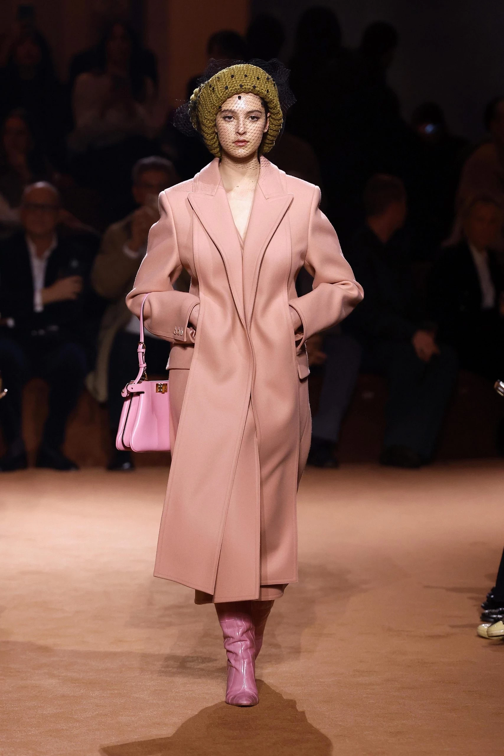 Модный Дом Fendi предлагает не бояться цвета и носить йогуртово-розовый с головы до ног — пальто, сапоги, сумка, платье. Такой образ выглядит свежо, дерзко и абсолютно по-осеннему, если дополнить его объемными тканями: кашемиром, замшей, зернистой кожей. А для тех, кто не готов к полному розовому погружению, Fendi рекомендует ввести цвет в образ аккуратными акцентами — например, надев светло-розовый верх к темно-коричневым брюкам. Эта пара создает сбалансированный и изысканный контраст.