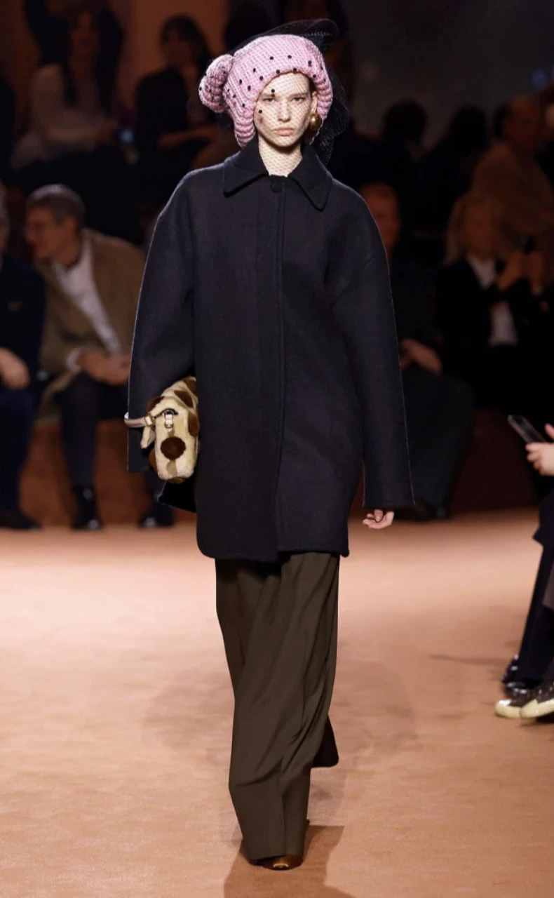 Этот тренд возвращается после долгого перерыва и обещает стать заметным элементом осенних образов. Fendi предлагает носить крупновязаные шапки максимально объёмными и даже акцентно — например, надвинув на бок. Цветовые сочетания вдохновлены показом: нежно-розовая шапка эффектно смотрится с графитово-синим и коричневым, а чёрная — с ярким оранжевым. Такой головной убор не просто согреет, но и добавит смелости в стиль.