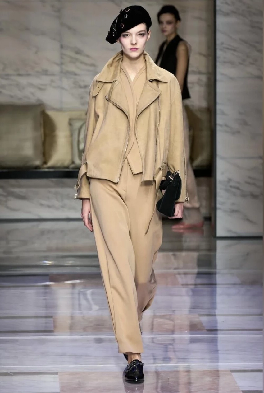 Если хочется женственности и изящества, присмотритесь к беретам от Giorgio Armani. Их носят с брючными костюмами свободного кроя и обувью на плоском ходу. Для вечерних выходов под костюм можно надеть структурированное бра того же цвета, что и берет — это создаст изысканную и стильную рифму.