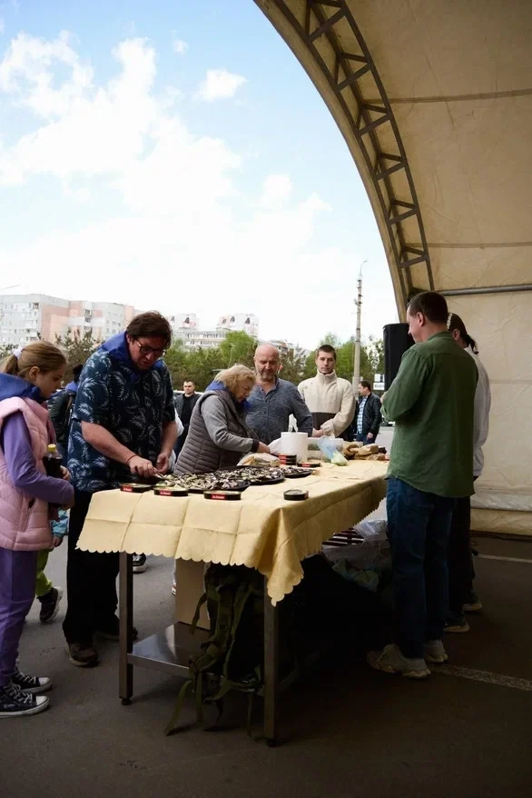На фермерском рынке «Четыре сезона» при поддержке председателя Тульского регионального отделения «Женщины Бизнеса» Алины Чистяковой состоялся кулинарный мастер-класс от известного шеф-повара. Участники научились готовить традиционное русское блюдо и получили в подарок синий платочек – символ женской верности и веры в Победу.