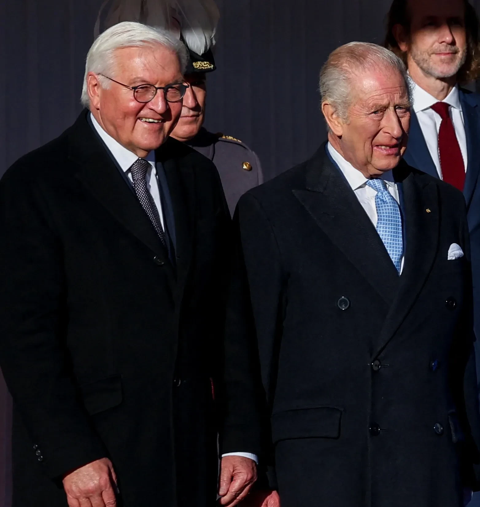 Принц Уильям и Кейт Миддлтон78-летняя королева Камилла, как и Кейт, вышла в пальто синего цвета во время приветствия Франка-Вальтера Штайнмайера и его супруги. Это первый за 27 лет визит главы Германии в Великобританию, в ходе которого состоятся торжественные визиты в парламенте и банкет.