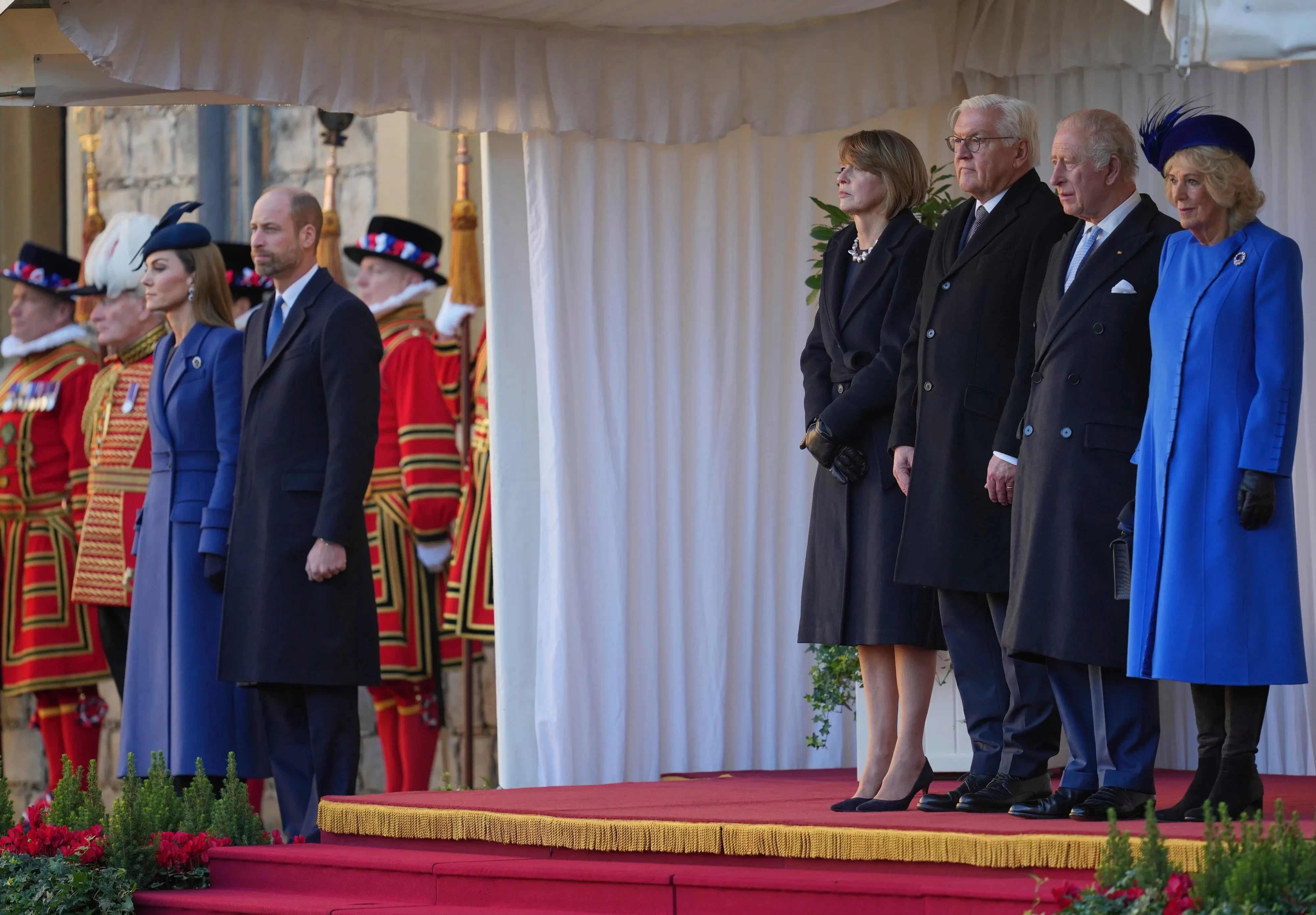 Франк-Вальтер Штайнмайер, король Карл III, королева Камилла, Эльке Буденбендер, принц Уильям и Кейт Миддлтон