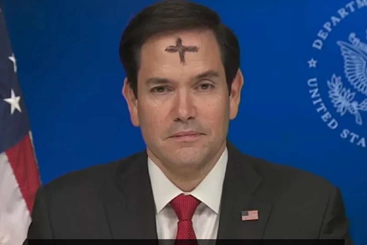 Госсекретарь США дал интервью в прямом эфире журналистам прореспубликанского телеканала Fox News. С журналистами он беседовал с начерченным на лбу «пепельным крестом». Никакой мистики в этом нет. Рубио дал понять американцам, что посетил мессу в Пепельную среду. Сам же знак означает начало Великого поста и ожидание светлого Воскресенья Христова.